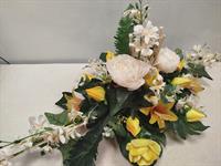 | Grande compososition de fleurs artificielles Grande composition de fleurs artificielles. Possibilité de mettre un ruban, le préciser dans la commande.