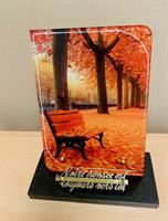Plaque en plexiglass taille 25 cm sur le thème de l'automne avec possibilité de mettre 2 inscriptions personnalisables (exemple Notre pensée est toujours vers toi).