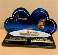 Plaque en plexiglass taille 35 cm sur le thème papillon avec possibilité de mettre 3 inscriptions personnalisables (exemple A ma Mamie, A mon papi , je ne vous oublierai jamais).