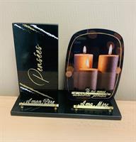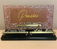 Plaque en granit et plexiglass taille 35 cm sur le thème de la pensée et de la bougie avec possibilité de mettre 3 inscriptions personnalisables (exemple A mon père, A ma mère, Je ne vous oublierai jamais).