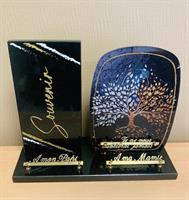 Plaque en granit et plexiglass sur le thème arbre de vie taille 35 cm avec la possibilité de mettre 3 inscriptions personnalisables (exemple A mon papi, A ma mamie, Je ne vous oublierai jamais).