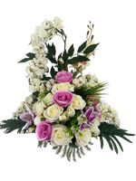 Photo non contractuelleGerbe Oeillet et roses couleur lila X2