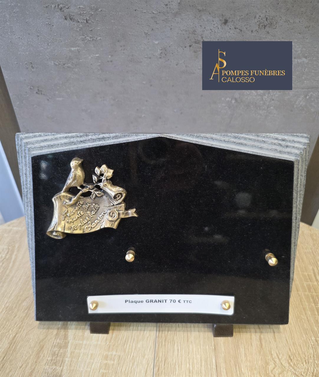 Plaque granit avec bronze et gravure 30 x 20 cm