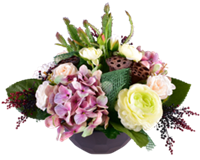 | Coupe rose beauty Coupe avec roses, pivoines, shamrocks et mûres dans support lesté - Couleur rose beauty - Dimensions 34 x 30 cm -