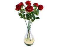 | Roses à la ligne (par 6) couleur rouge Botte de 6 roses épanouies d'env. 65 cm - Couleur rouge - Vendues sans contenant -