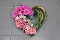 Photo for illustration purposes only | Coeur Framboise Coeur de fleurs de saison pour un hommage touchant et symbolique dans différents tons de rose. env. 50 cm