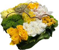 Photo for illustration purposes only | Gerbe piquée Soléa gerbe piquée dans les ton jaune, orange et blanc.