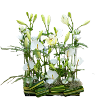 Photo for illustration purposes only | Bouquet Pureté Composition florale sobre et élégante pour un hommage.