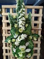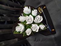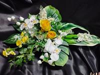 Coupe de fleurs en tergal blanches et jaunes. Largeur 60 cm, Hauteur 25 cm