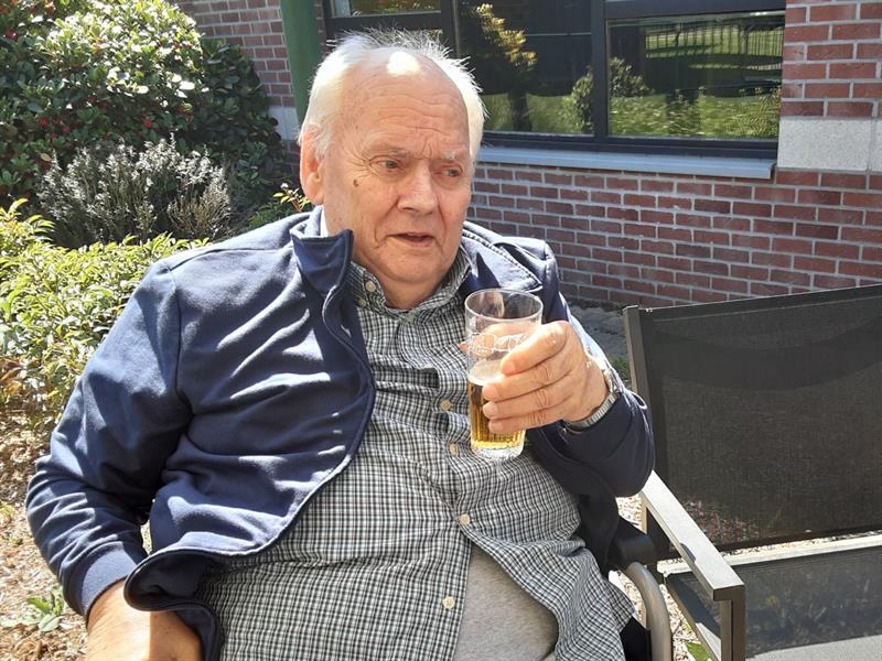 Tijdens de muzieknamiddag kon hij wel eens genieten van een fris pintje.